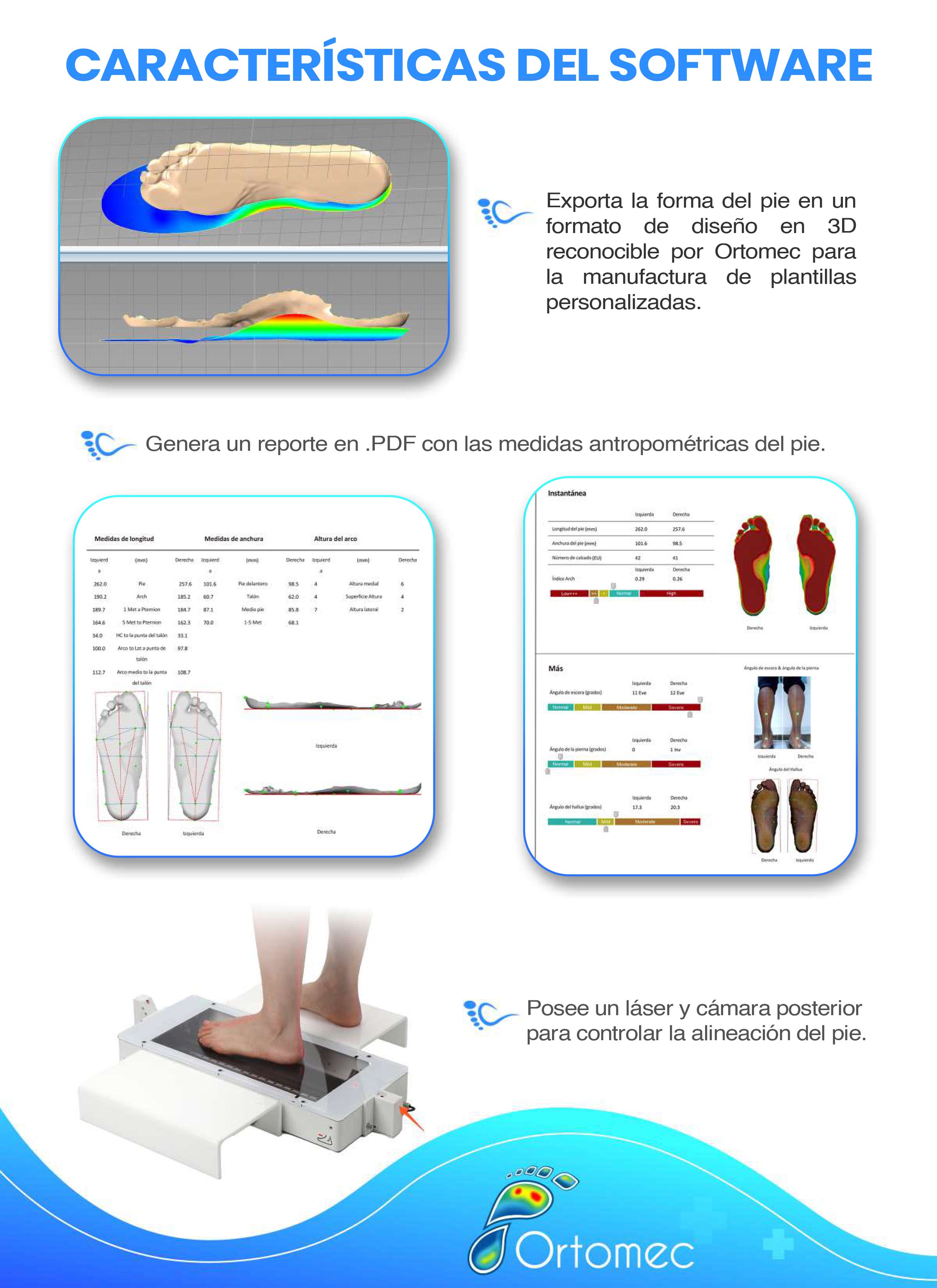 Se trata del Scanner 3D ECOPLAN de Ortomec — un dispositivo electrónico que captura la morfología del pie en tres dimensiones para luego diseñar plantillas ortopédicas que se ajusten perfectamente al pie del paciente.