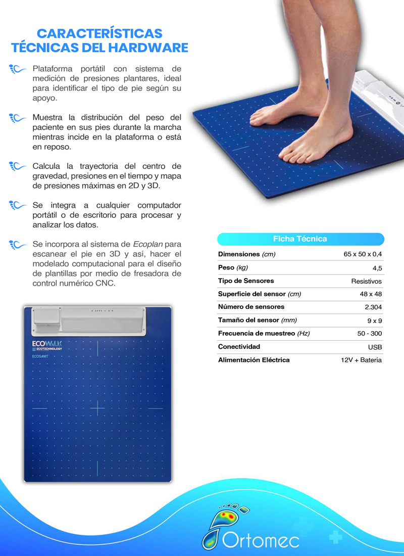 Forma parte del sistema ECOSANIT, que integra esta plataforma (“ECOWALK”) para el análisis, más una fresadora numérica (“TAITAN”) para fabricar plantillas personalizadas.