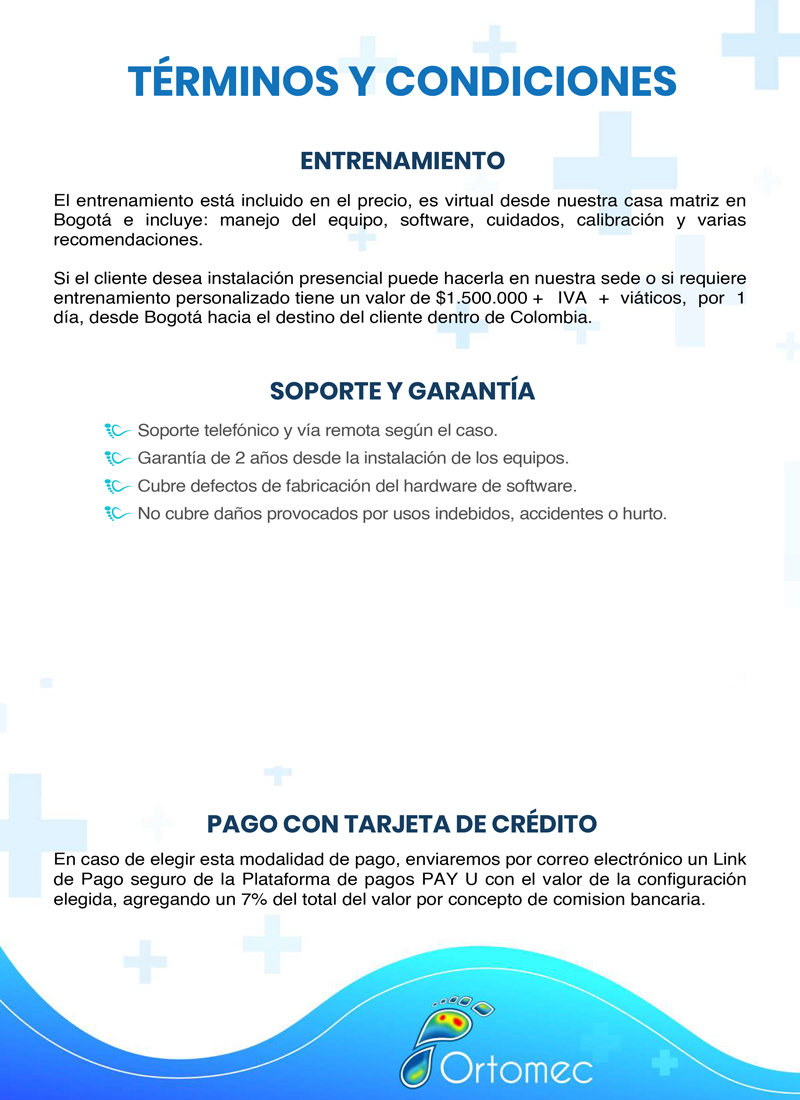 El entrenamiento está incluido en el precio e incluye: Instalación, manejo de los equipos, software, cuidados, calibración y recomendaciones varias. Los viáticos de instalación y entrenamiento están excluidos del precio.